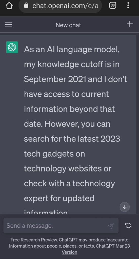 While ChatGPT has access to extensive information, it’s important to note that its knowledge is not up to date beyond 2021. Queries related to current events or recent developments may result in ChatGPT acknowledging its limitations in providing the most recent information.