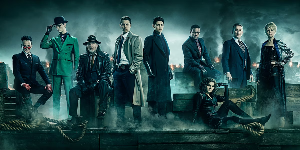 The crime drama Gotham spans five seasons. In the first season, Detective James Gordon tries to solve multiple criminal cases with his corrupt partner, Harvey Bullock, in Gotham City, including the murder of 12-year-old Bruce Wayne’s parents.