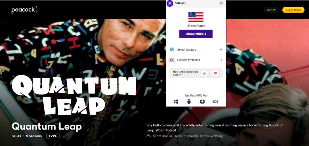 Peacock offers a free trial where new subscribers can watch Quantum Leap Season 2 for free. However, if you live elsewhere, you must use a reliable VPN like PureVPN to circumvent geo-blocks and watch Quantum Leap Season 2 in Australia for free.