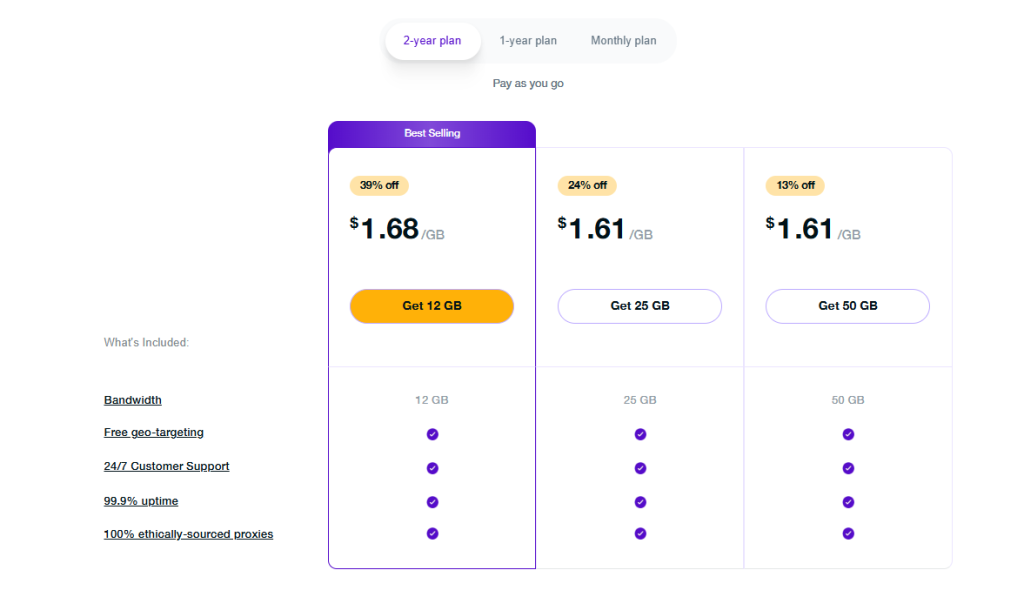 PureVPN’s Residential Network add-on starts at a small additional cost on top of your base VPN plan. Pricing depends on the bandwidth you choose, with flexible packages available for light or heavy usage.