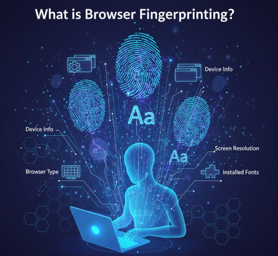 Browser fingerprinting, or “digital fingerprinting”, collects details about your browser, device, and system (like screen resolution, fonts, operating system, installed plugins) and uses that to build a unique signature.