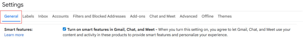 3-In the General tab, look for a setting called Smart features (or Smart features and personalization).