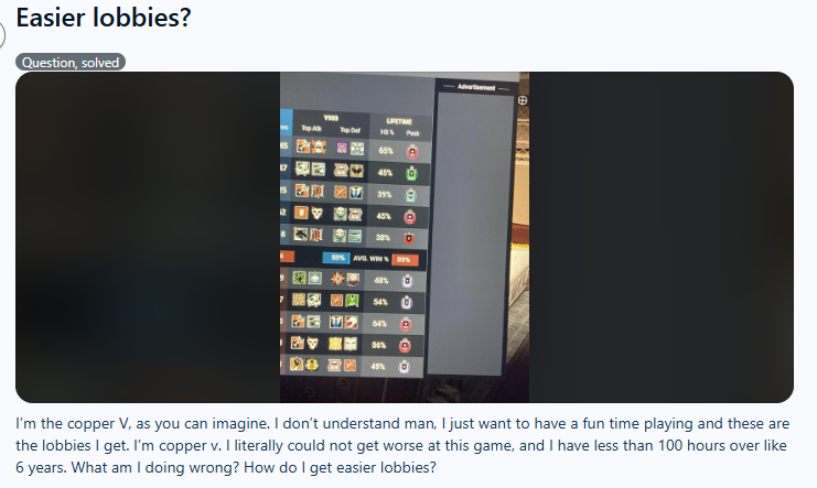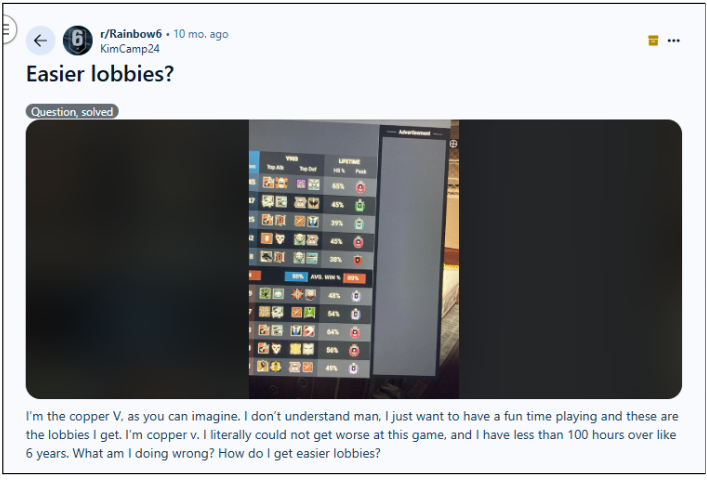Others note that region-hopping works best when paired with low-rank friends. In one Reddit thread, a Champion-ranked player vented about being matched with Coppers and Silvers, which is an example of how MMR balancing sometimes tilts lobbies into “bot-like” territory.