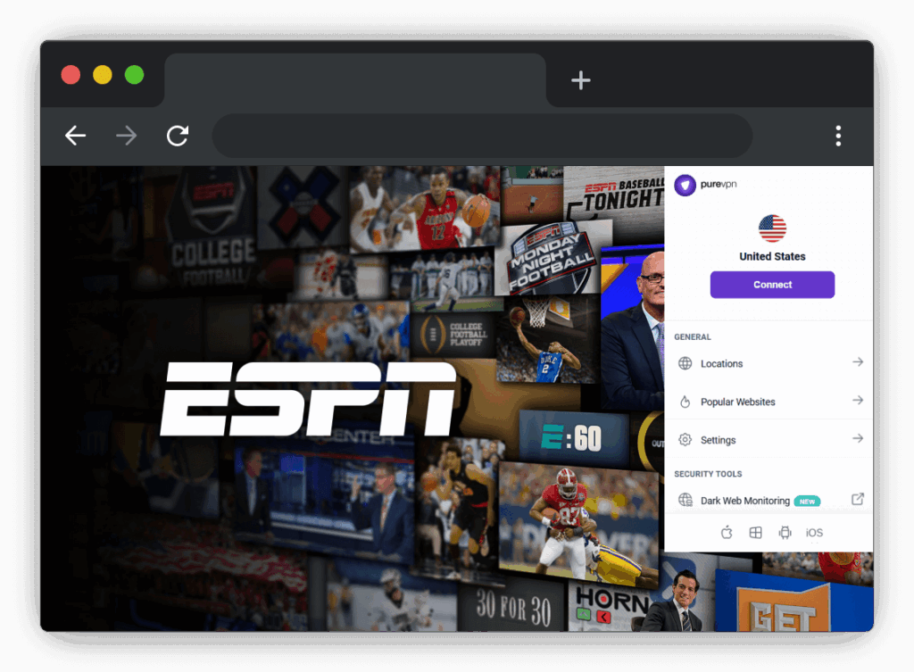 You can watch the 2025–26 French Ligue 1 from anywhere using ESPN+, which is the official broadcaster in the U.S. If you’re outside the U.S., you can connect to PureVPN, select a U.S. server, and stream all matches live on ESPN+.