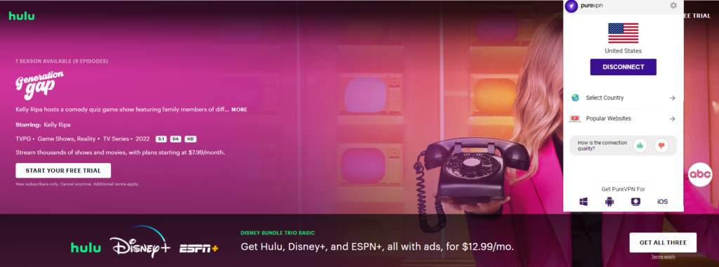 But our PureVPN is here to help you! It changes your IP address, which is like your internet home address, to make it look like you’re online from the US, even if you’re actually somewhere else. With this trick, you can get around Hulu’s blocks, and you’ll be able to watch all of Hulu’s content, including Generation Gap Season 2. So, no matter where you are in the world, you can sit back and enjoy this amazing quiz show!