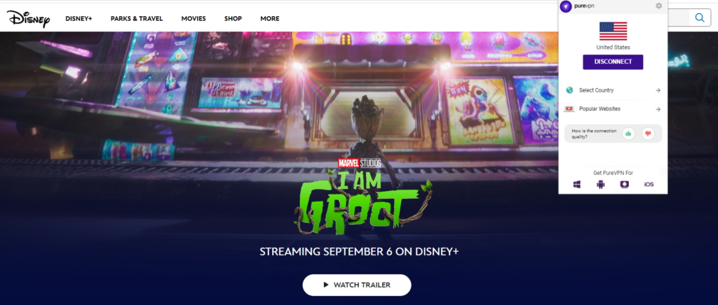 PureVPN – The Best VPN to watch I Am Groot Season 2 on Disney+ in the US