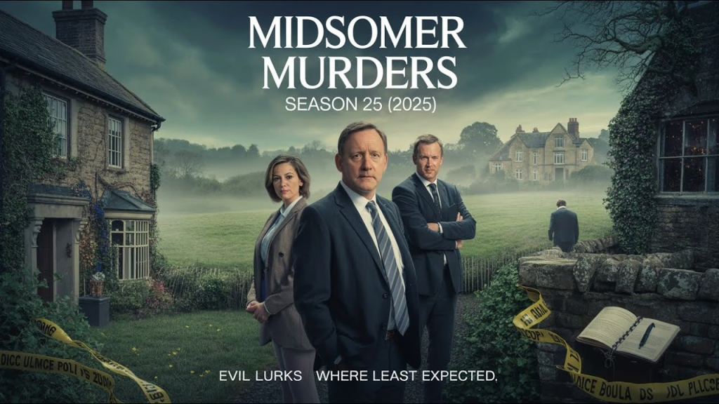 Midsomer Murders Season 25 comes with four new feature-length mysteries that take place in the deceptively calm villages of Midsomer County. Every episode gives a new, independent case with difficult clues, strange suspects, and a mix of tension and dark humor, which is the hallmark of the show.