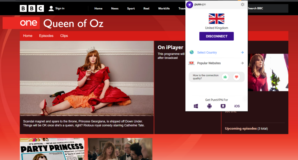 To avoid this roadblock, you can use PureVPN to change your virtual location to the UK and appear as a native user on the BBC servers. And that’s how you can access BBC iPlayer, and that’s how you can watch Queen of Oz in the US like a regular Brit.