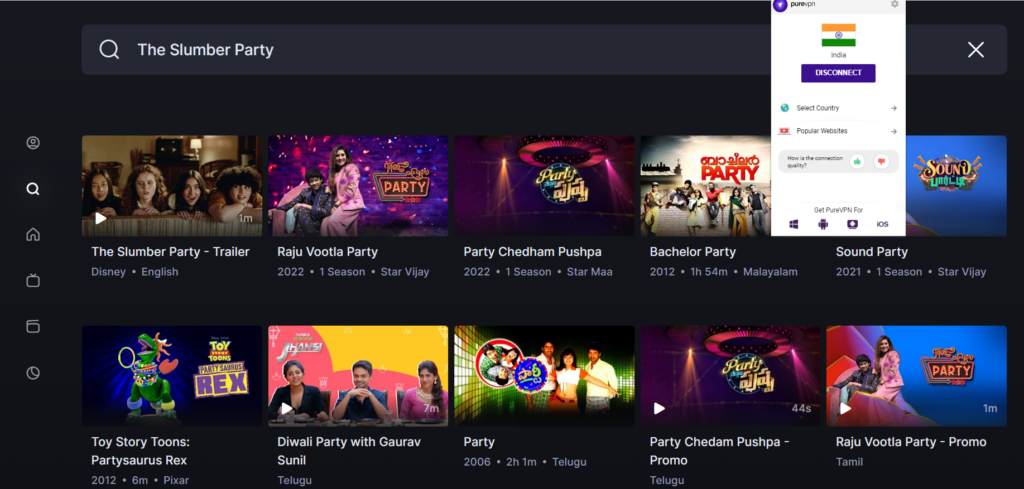 The Slumber Party is releasing on Disney+ Hotstar, where viewers can watch it without any hassle. But people in the US may have to opt for a good workaround like PureVPN to dodge geo-restrictions.