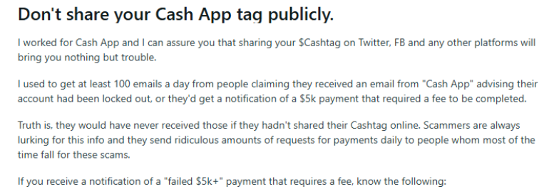 “I worked for Cash App … sharing your Cashtag … will bring you nothing but trouble.” Reddit