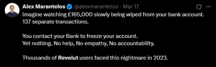 Finally, Revolut’s automated fraud-detection systems can be overly aggressive, sometimes flagging legitimate transactions and locking accounts. Combined with limited customer support, this continues to fuel user frustration and doubt around how “safe” Revolut truly is in real-world use.
