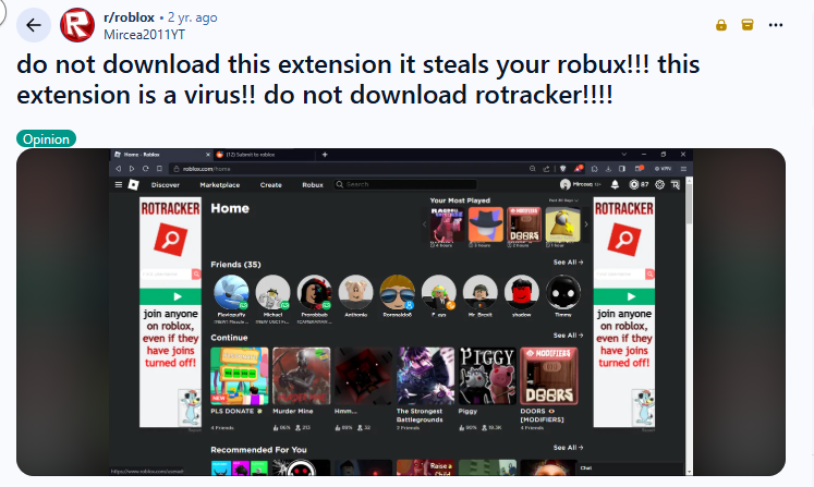 Roblox users, in particular, are prime targets for scams because of how popular the platform is among younger players. In recent years, there’s been a rise in fake Roblox extensions claiming to offer free Robux, exclusive items, or special features, but in reality, they install trackers or steal login credentials.