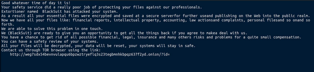 Like other ransomware groups, BlackSuit employs a double extortion scheme that
