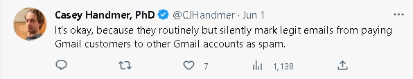 A different commenter mentioned, “Gmail can’t fix the fact that [Microsoft] knowingly delivered an email that it KNEW failed SPF and DMARC.”