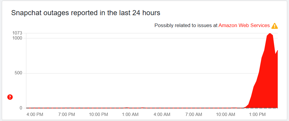 - Outage-tracking platforms such as Downdetector and IsDown recorded thousands of Snapchat outage reports within an hour of the first AWS failure alert.