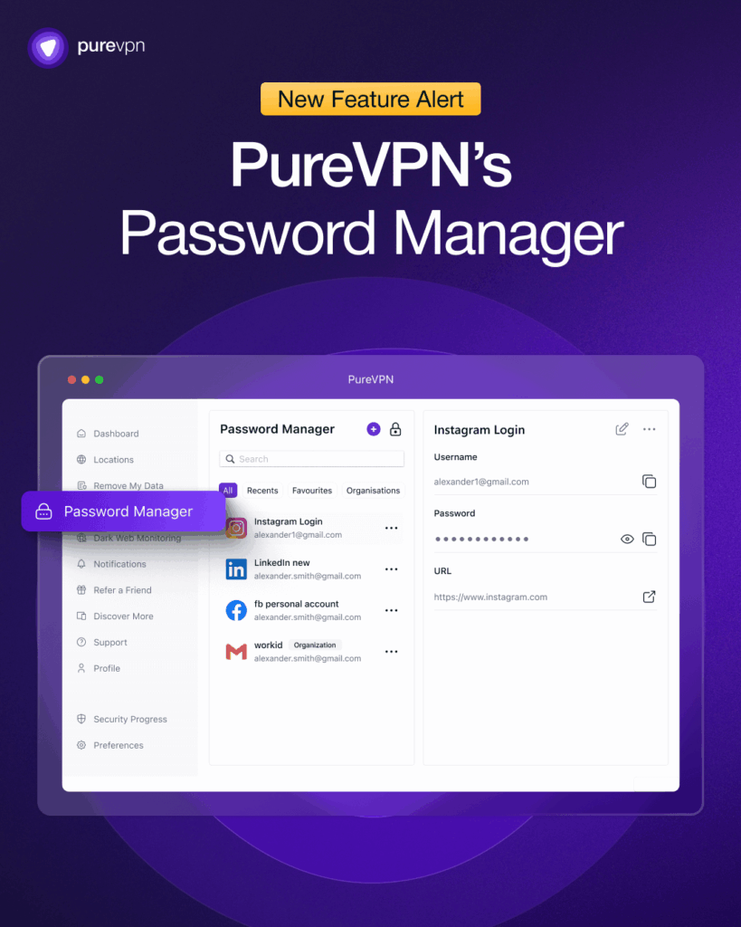 If you’re looking for a tool that balances security, privacy, and cost, PureVPN’s Password Manager fits your nonprofit’s needs. Here’s what it offers: