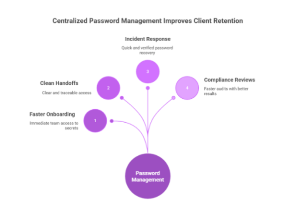 For IT teams, password vaults provide centralized visibility. Administrators can:
