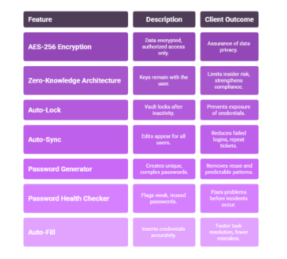 Advanced password vaults solve this challenge by generating strong passwords, securely storing credentials, and giving organizations centralized control over access management.