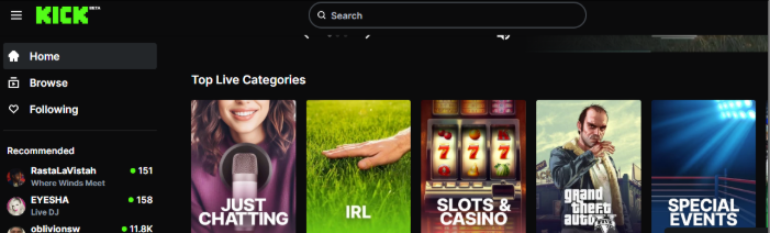 - Familiar interface: For Twitch users, Kick feels familiar: live chat, categories, 1080p streaming, VODs, etc.