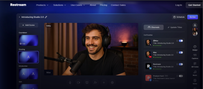 If you don’t want to choose just one platform, you can stream to multiple simultaneously, spreading reach across platforms like Twitch, Live, Kick, Trovo, etc. Restream is a tool that lets you broadcast to several at once.