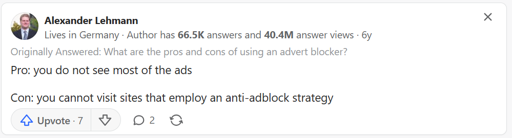 Many websites rely on advertising income to fund content creation. Blocking ads can reduce revenue for publishers, especially smaller or independent sites.