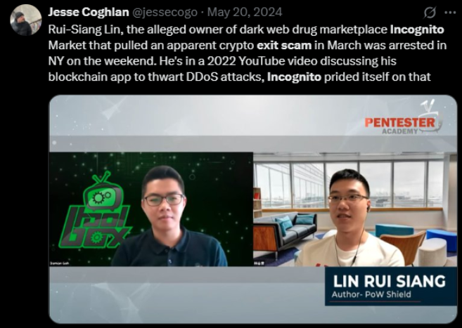 Incognito’s collapse in 2024 combined an exit-scam pattern with extortion. Administrators reportedly froze withdrawals and began blackmailing vendors and buyers, demanding “fees” to avoid leaking private chats and data. Law enforcement arrested an alleged operator (Rui-Siang Lin) in May 2024; subsequent charges illuminated how operators combined exit-scam behavior with additional criminal leverage.