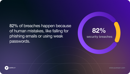 - 82% of breaches happen because of human mistakes, like falling for phishing emails or using weak passwords.