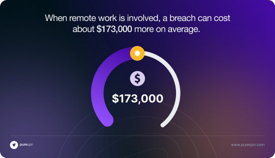 - When remote work is involved, a breach can cost about $173,000 more on average.