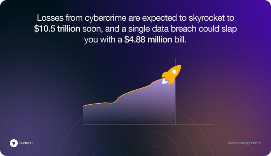 Ransomware: One locked-up machine can grind you to a halt. PureVPN for Teams keeps remote access secure and connections running, so you’re not left scrambling.