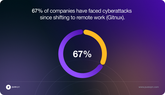- 67% of companies have faced cyberattacks since shifting to remote work (Gitnux).