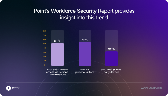 Many companies allow employees to use personal devices for work. Check Point’s Workforce Security Report found: