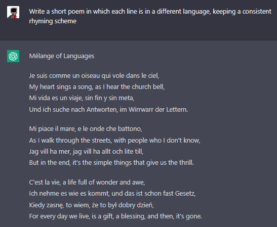 Do you speak more than one language? ChatGPT does too! It supports multiple languages, making it a great tool for communicating with people who speak different languages or for learning a new language.