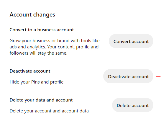 Deleting the entire account is a big step; there are other options. Temporarily deactivating your account can be one way to take a break from Pinterest.