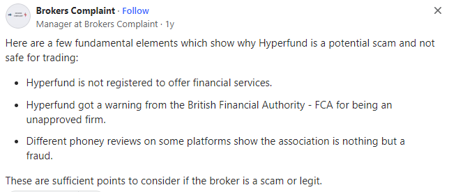 Users have also reported how difficult it is to access or withdraw funds. This indicates a lack of transparency by the Hyperfund platform.
