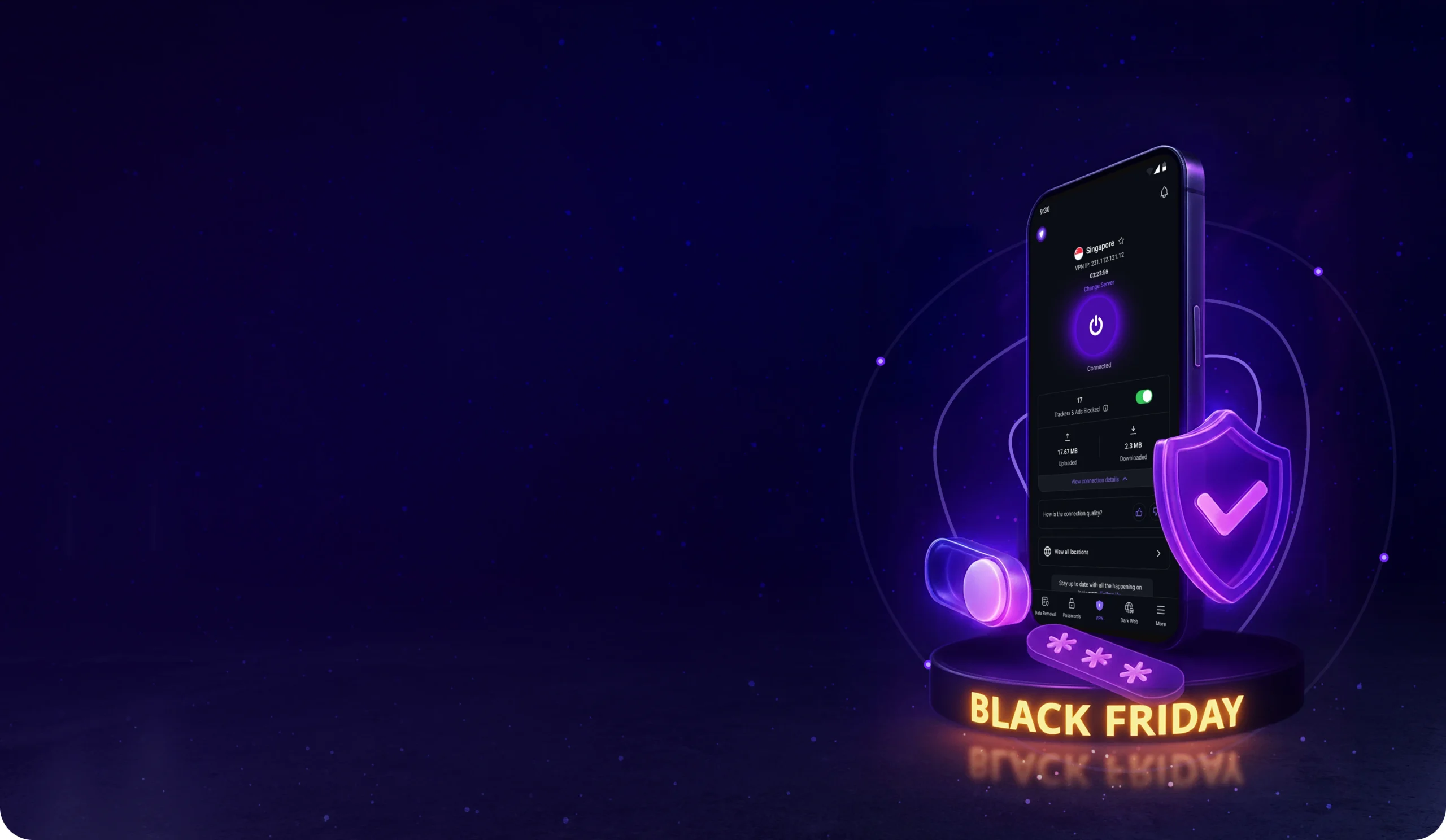 Zwiększ bezpieczeństwo online dzięki funkcji kill switch, która automatycznie odcina dostęp do Internetu w przypadku rozłączenia VPN.