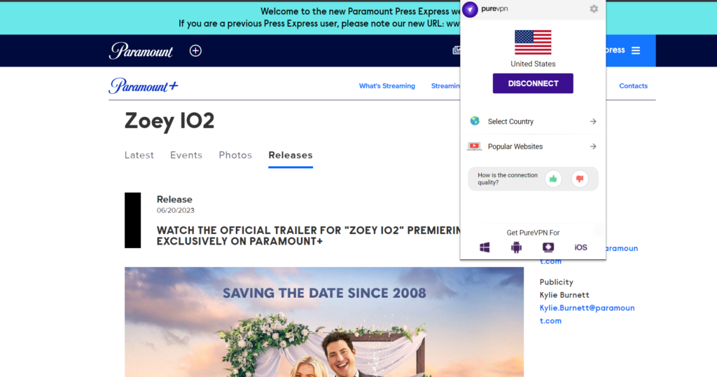 Fortunately, you can use a high-quality VPN like PureVPN to access Paramount+ like a native. It will allow you to connect to a US server and change your IP address and virtual location. With PureVPN by your side, you no longer have to worry about geo-restrictions. Just search for the show, and watch Zoey 102 from anywhere in the UK without a hitch.