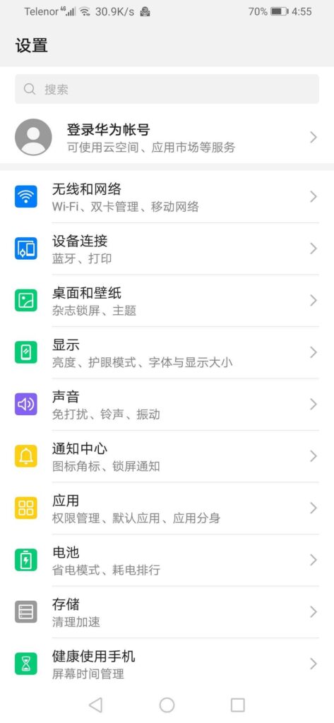 打开您的华为设备的设置