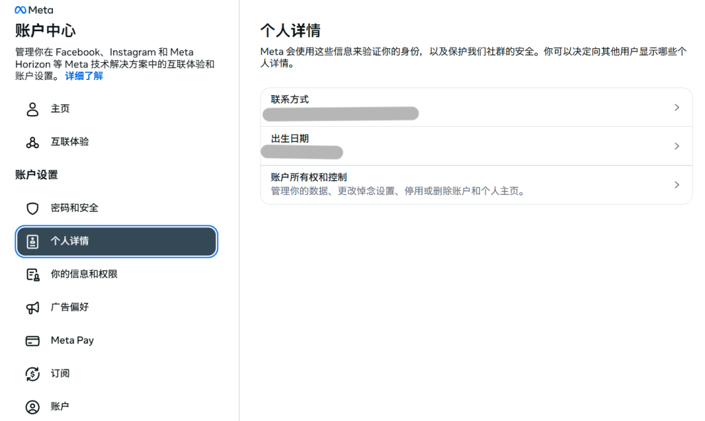 - 在 “个人详情” 下点击 “账户所有权和控制” 。